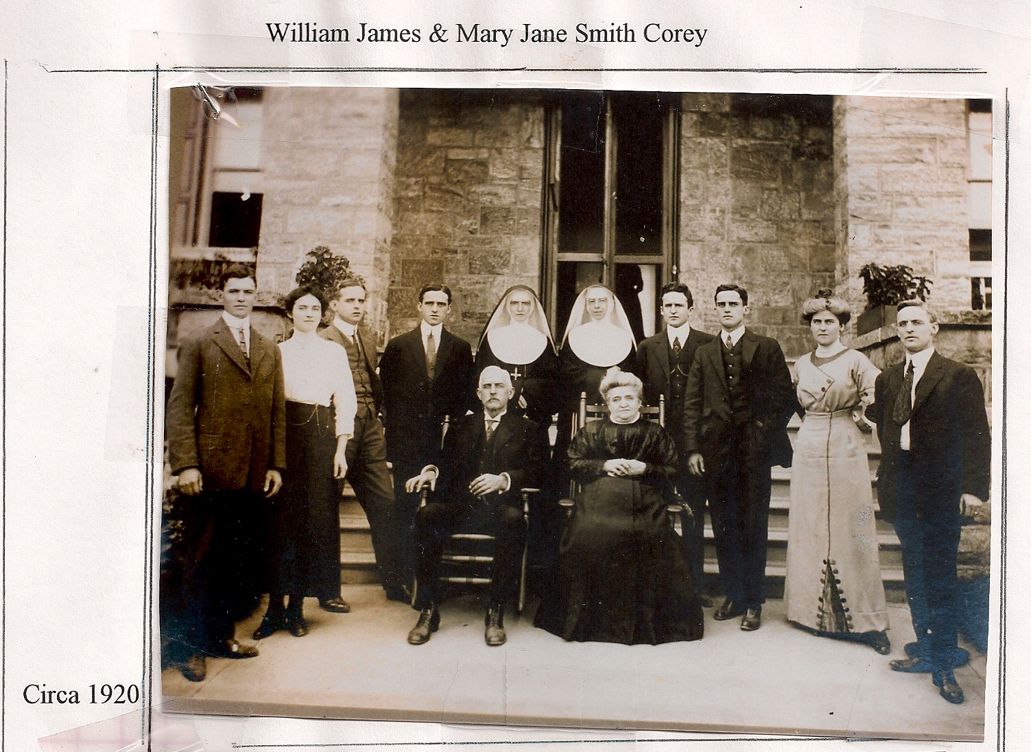 Left to right (standing): James, Anna, Mark, Joseph, Susan (Sister Berchmans), unknown Sister, John, Thomas, Martha, William Jr.