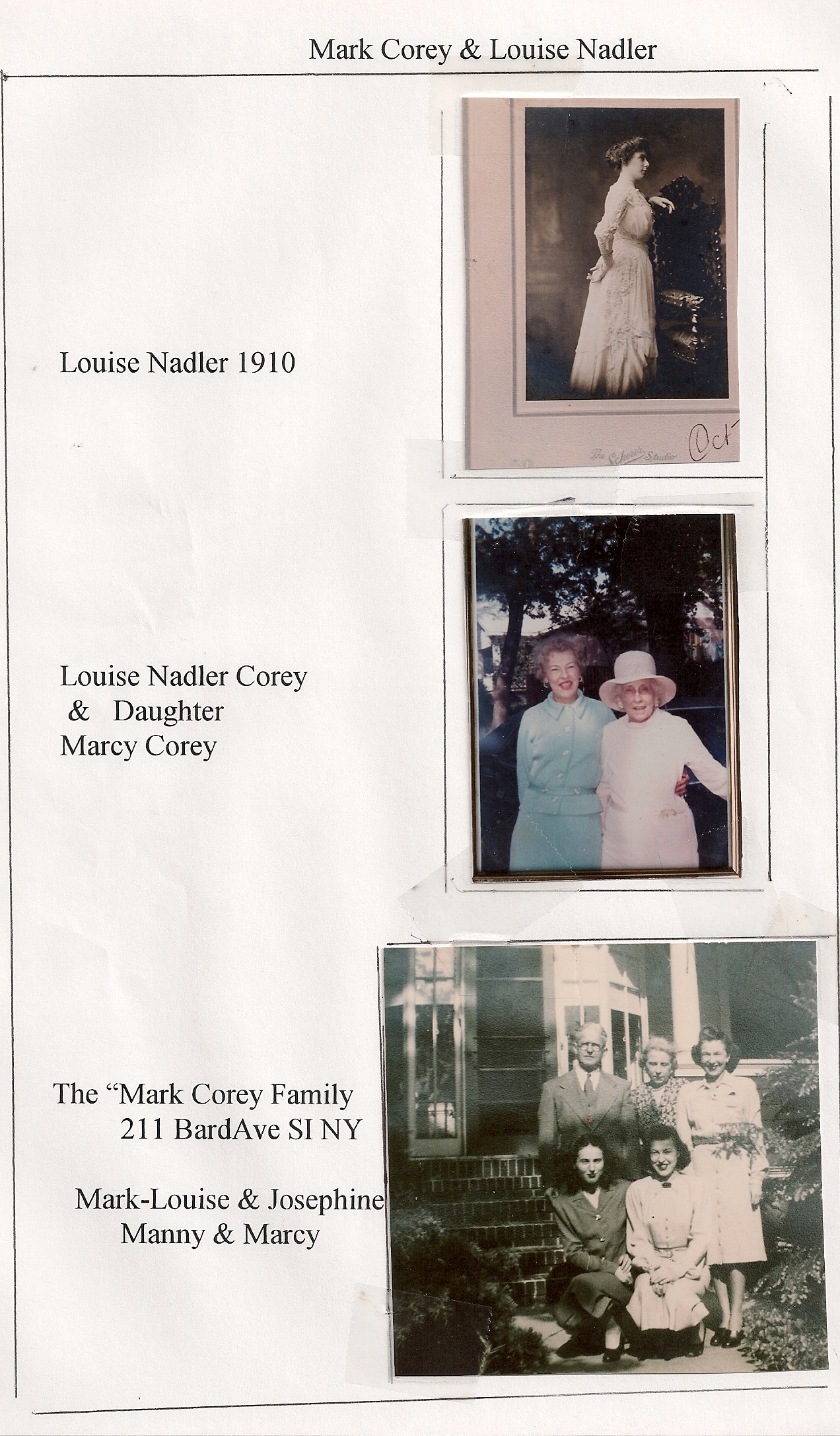 In the 1920 US Census, Mark (working as "clerk") and Louise are listed as residing at "130 Targee Street, Stapleton SI NY" with three daughters; Josephine (6), Martha (4) and Manuela (1).